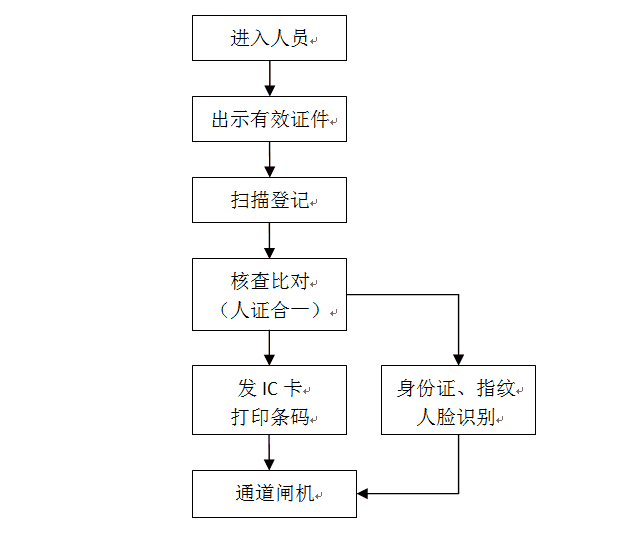 ? ? ??進出人員經(jīng)過訪客登記管理系統(tǒng)登記后,訪客管理系統(tǒng)將人員信息寫入IC卡內(nèi)或者打印條碼信息,進出人員將IC卡在閘機上面輕輕一刷或者讀取條碼信息便可自由出入,同時系統(tǒng)也可以利用身份證方式、指紋方式進出通道閘機。