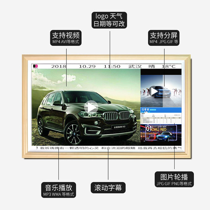 深圳博奧智能定制商場酒店場藝術(shù)館居家原木色畫框自動播放廣告機(jī)