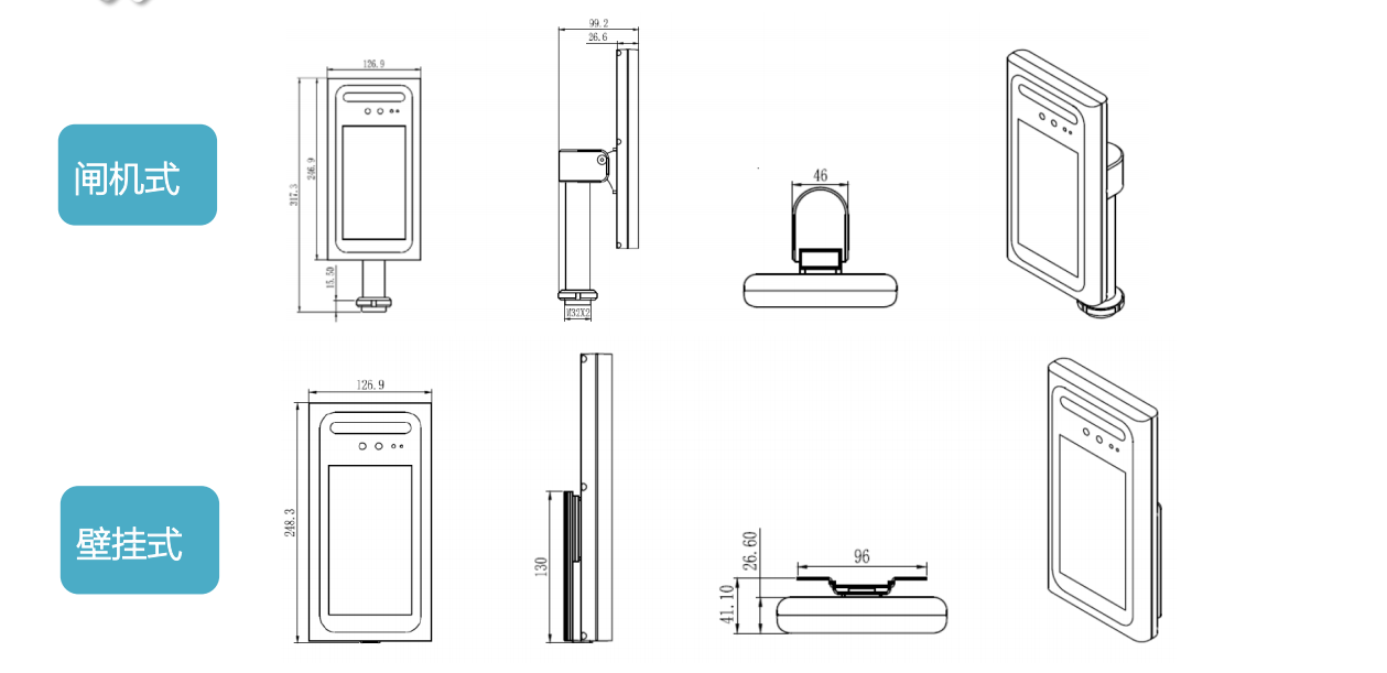 安裝方式 壁裝支架、壁裝、86盒安裝 立式支架、閘機裝