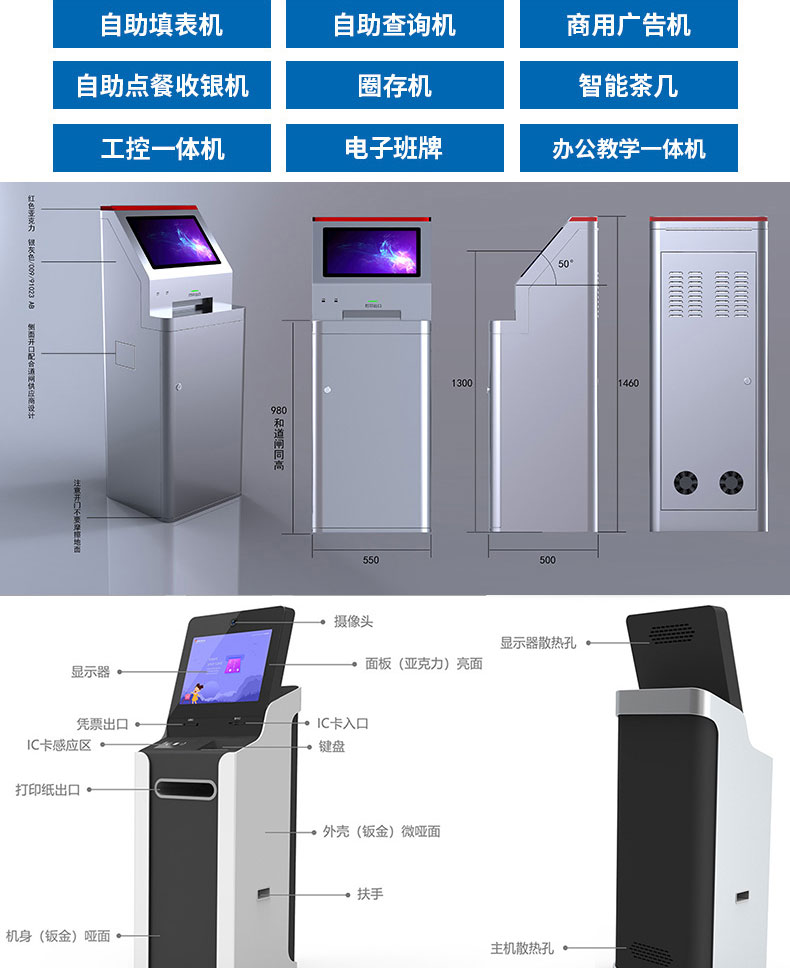 定制實用的自助終端設備,我們是專業(yè)。多種定制款式任意選擇,可根據需求定制外觀屏幕尺寸可選,配件數量可選,主機配置可選。