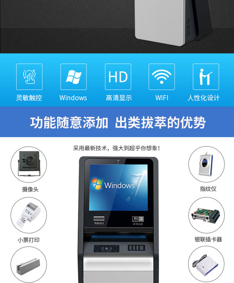 自助終端機定制:定制各種場景各種款式非標終端機;例如訪客機、景區(qū)自助取票機、醫(yī)院繳費查詢機、醫(yī)院自助取單機、社保查詢機、室內外廣告機、排隊叫號機、工控一體機、電力繳費查詢機、圖書自助銷售機、便攜式計算機、酒店自助入住機、自助收銀機等終端。