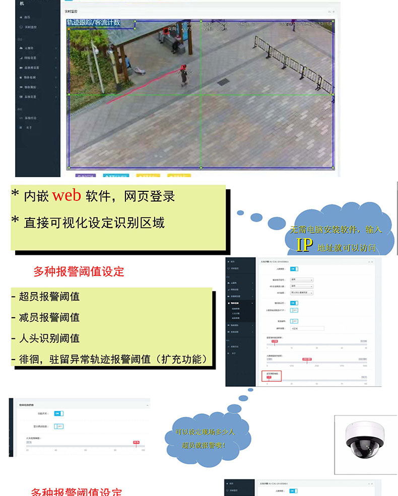 景區(qū)商場超市客運智能監(jiān)控客流人數(shù)統(tǒng)計軌跡跟蹤AI攝像機支持定制開發(fā)