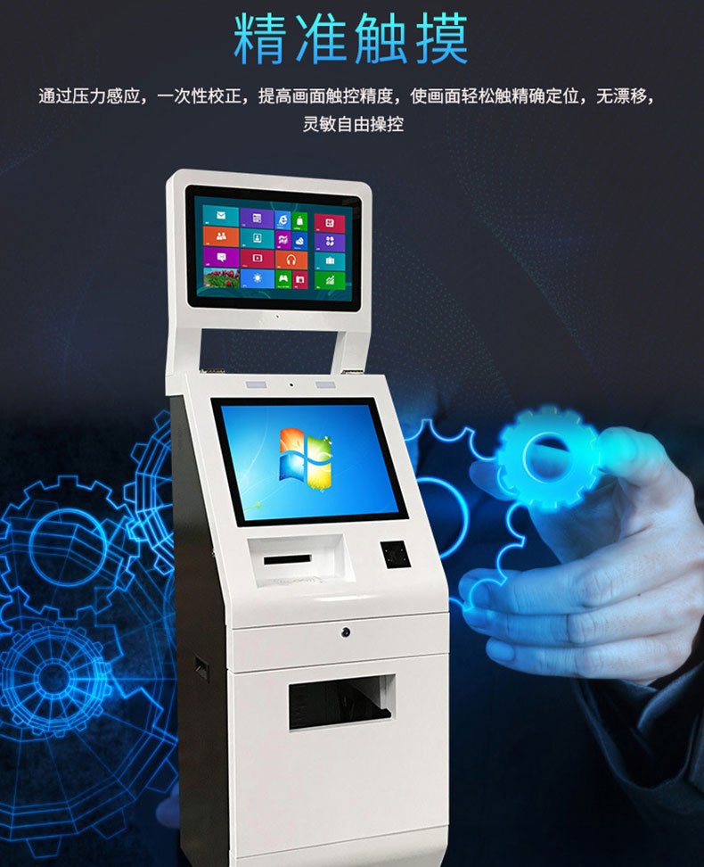 大廳雙屏觸摸一體機(jī)定制人臉識(shí)別發(fā)卡A4打印自助終端系統(tǒng)軟件開(kāi)發(fā)